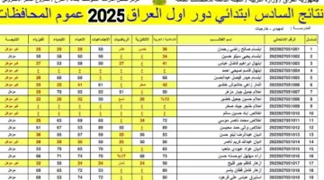 تاريخ النشر برقمك الامتـــحانــي نتائج الصف السادس الابتدائي 2025 الدور الأول نينوى إعلان نتائج الصف ال6 العراق