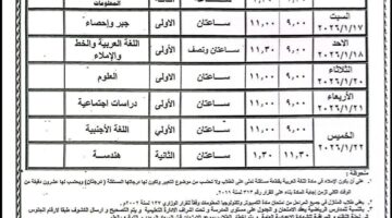 “الان” جدول امتحانات الشهادة الاعدادية 2025/2026 ترم اول الفيوم وكل المحافظات